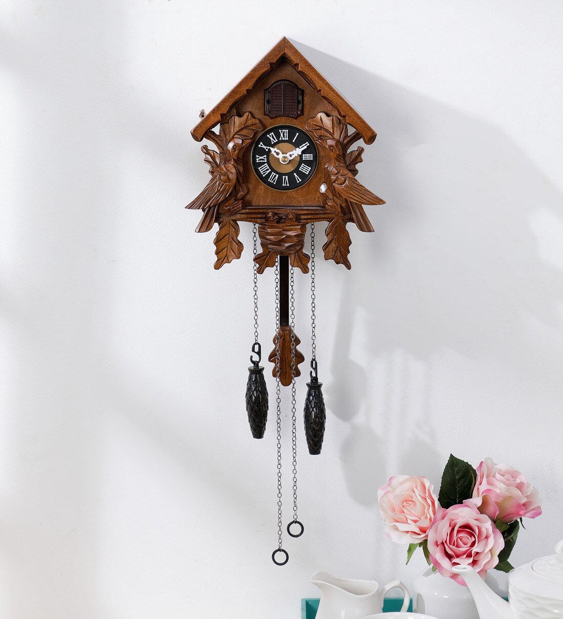 Brown Wood Single Bird and Pendulum Hut Shape Cuckoo Clock