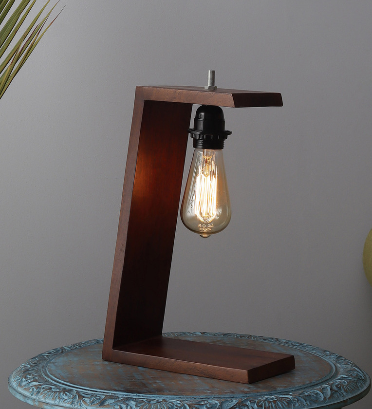 Thin Minimilistic Brown Shade Table Lamp with Wood Base