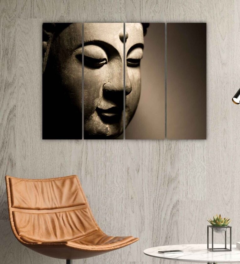 Buddha Brown Wood Framed Spiritual Art Panels Set of 4