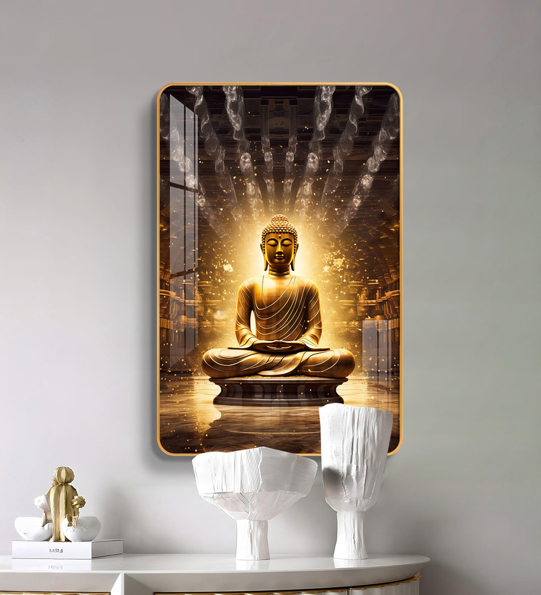 Bring home the timeless elegance of nature with our Buddha's Glow Wood Glass Finish Wall Art. The vibrant hues and intricate detailing of the design, a perfect balance of grace and grandeur, making it a captivating centerpiece for your living room, hallway or bedroom. Designed to symbolize prosperity, beauty, and positivity. High-definition print, Durable long-lasting quality material wall art perfect for modern and traditional interiors