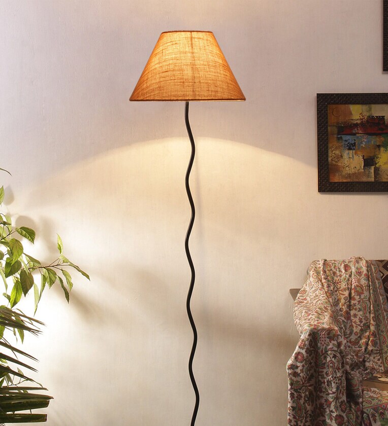 Bumpy Beige Jute Shade Club Floor Lamp With Iron Base