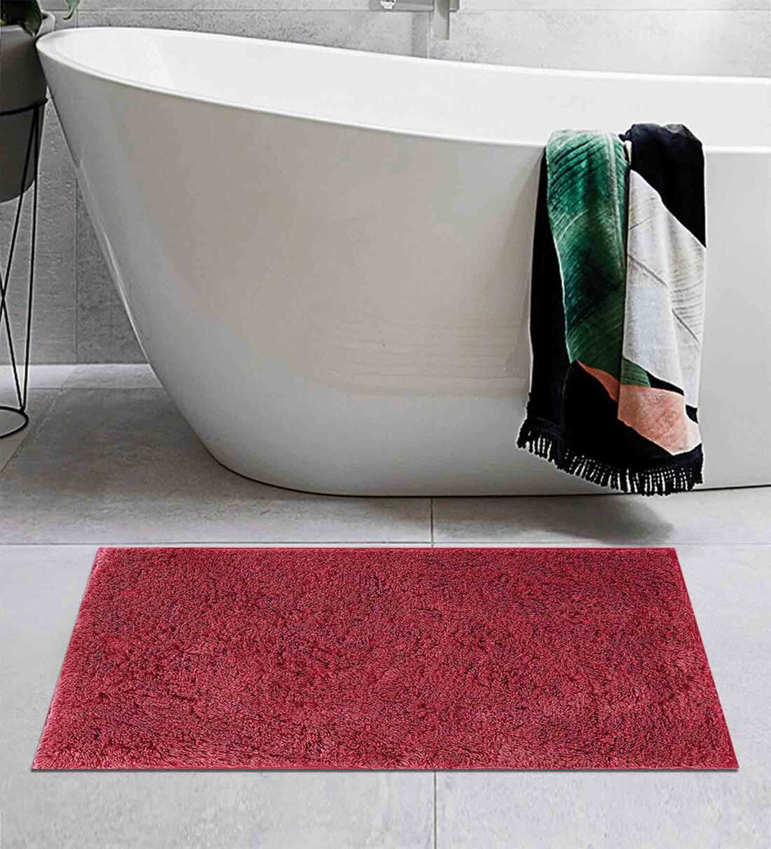 Burgundy Solid Cotton AntiSkid Bathmat