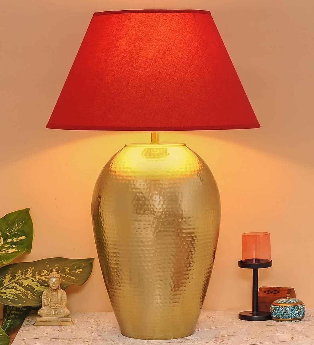 Burnie Maroon Cotton Shade Night Lamp With Mild Steal Base
