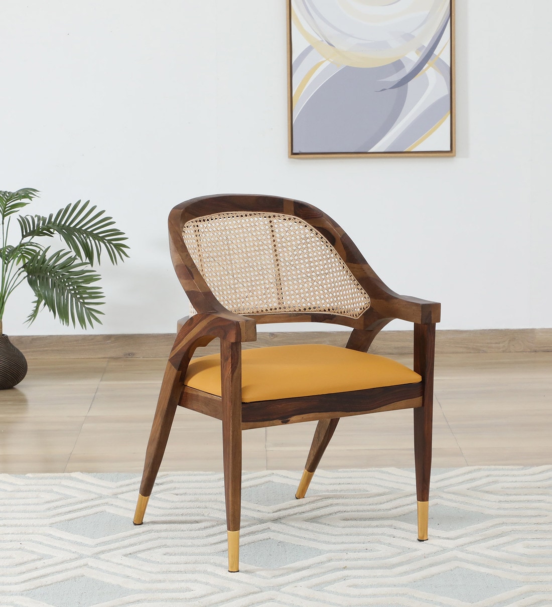 Calvary Sheesham Wood Arm Chair In Scratch Resistant Provincial Teak Finish with Cane Mesh