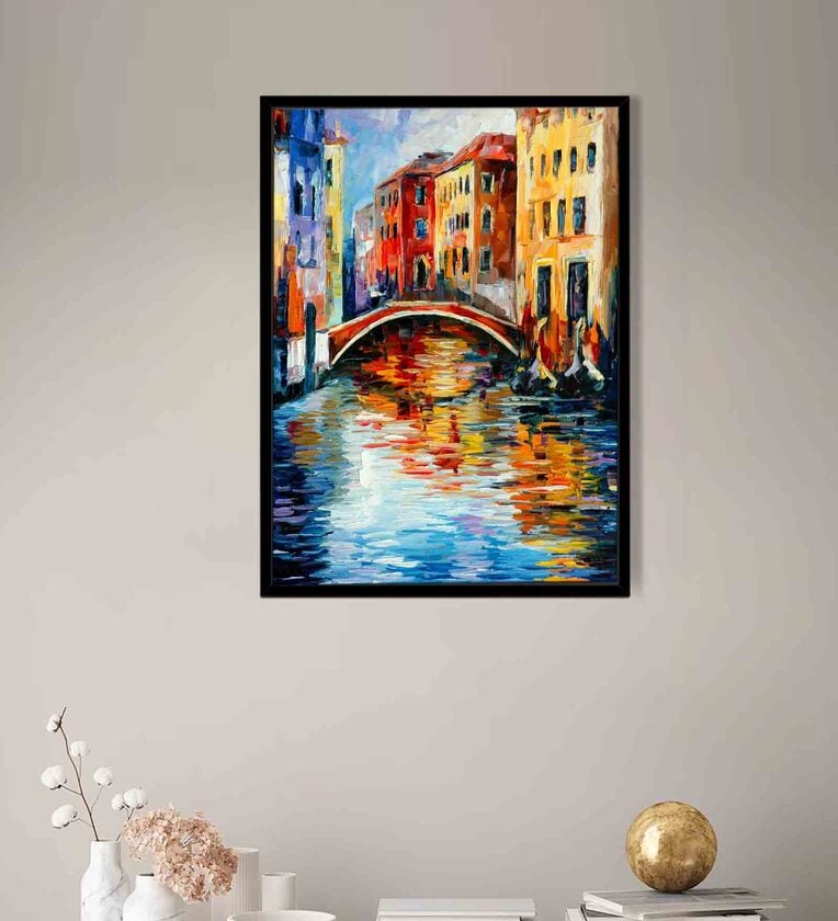 Canal Venice Multicolour Synthetic Wood Framed Canvas Wall Painting