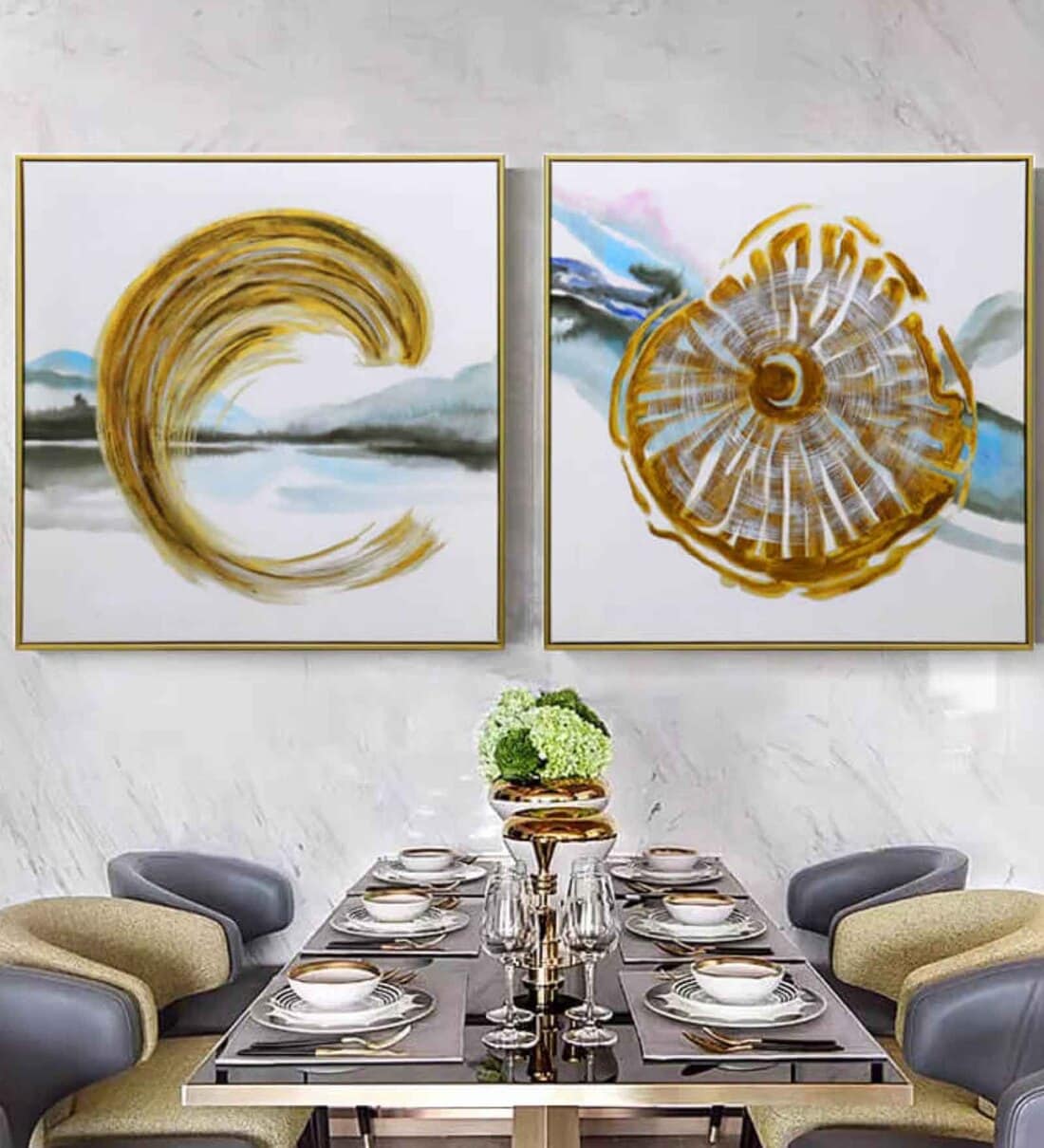 Very intricate hand-made beautiful Gond art paintings by Indian masters(inspired by nature and its elements). Encased in the champagne-colored frame.Ready to adorn your abode.