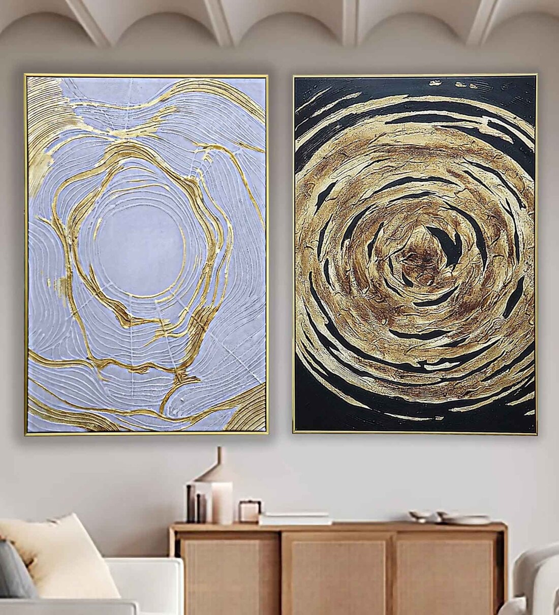 Very intricate hand-made beautiful Gond art paintings by Indian masters(inspired by nature and its elements). Encased in the champagne-colored frame.Ready to adorn your abode.