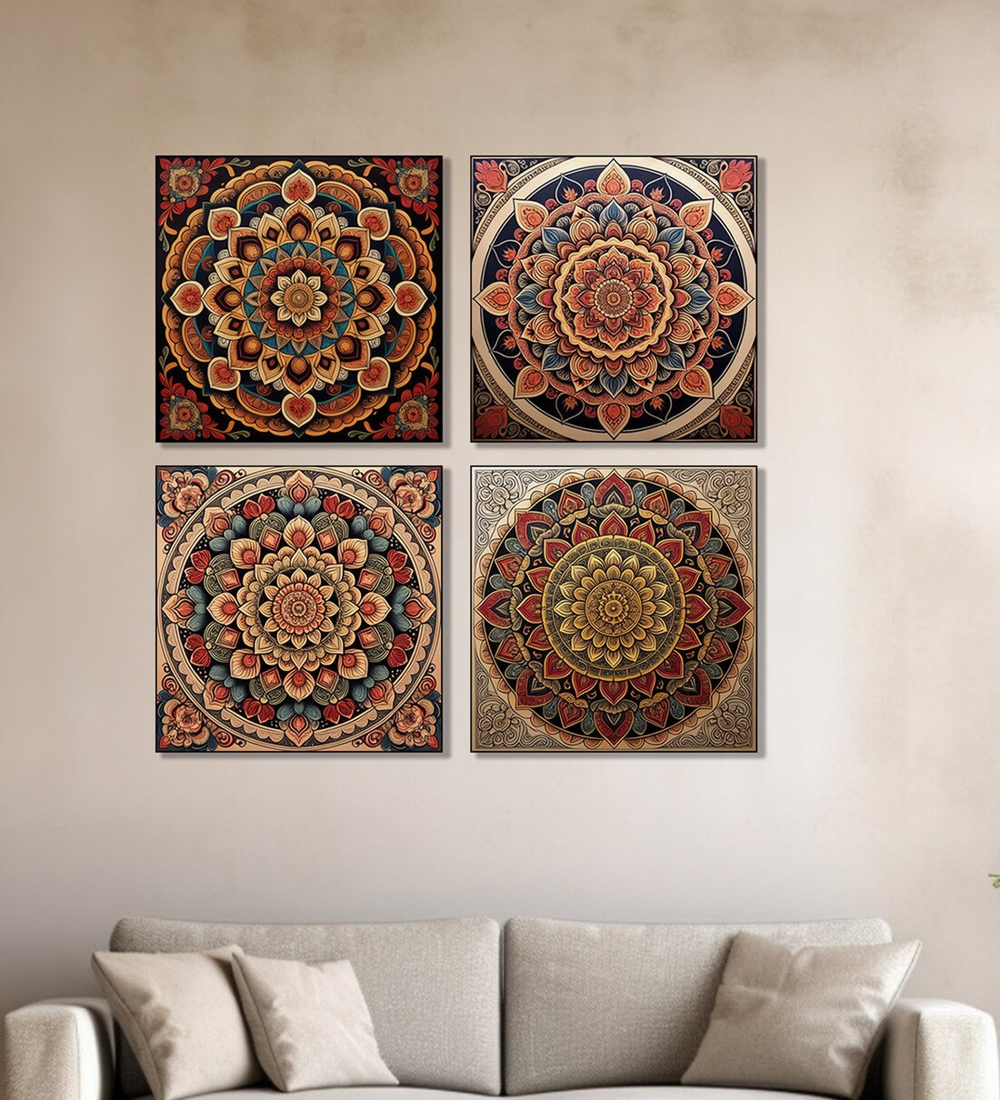 Canvas Art Collection Printed Wall Painting Set of 4 Black Frame