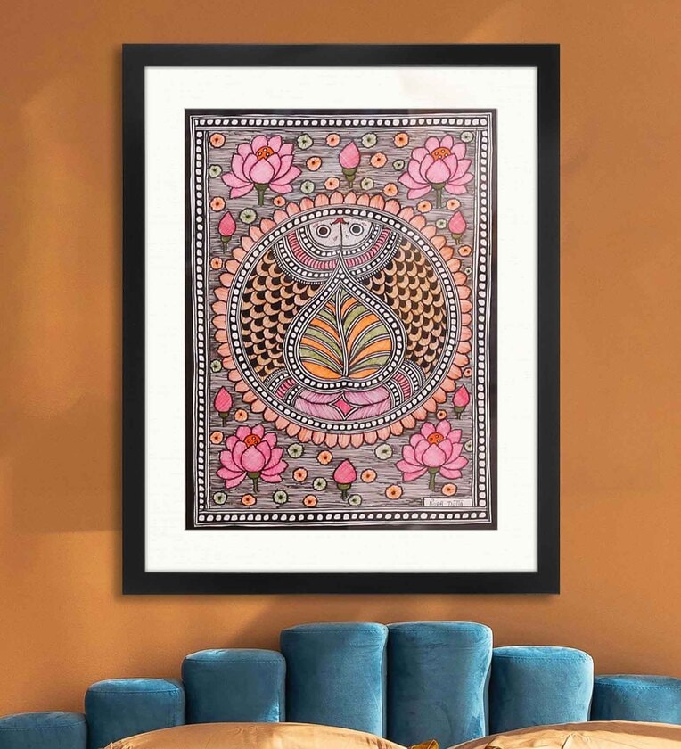 Very intricate hand-made beautiful Gond art paintings by Indian masters(inspired by nature and its elements). Encased in the champagne-colored frame.Ready to adorn your abode.