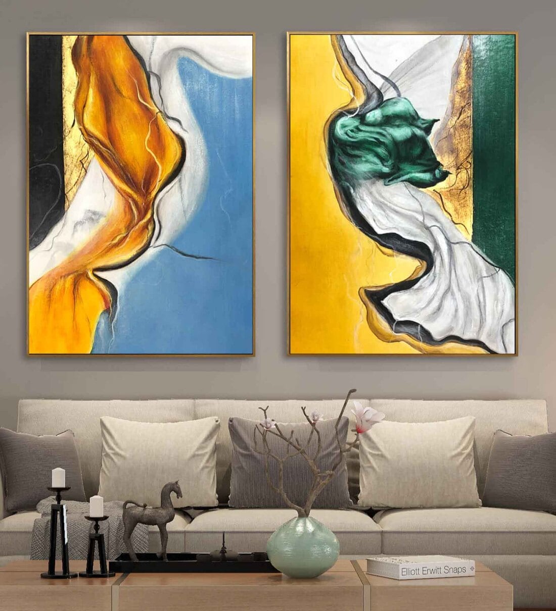 Very intricate hand-made beautiful Gond art paintings by Indian masters(inspired by nature and its elements). Encased in the champagne-colored frame.Ready to adorn your abode.