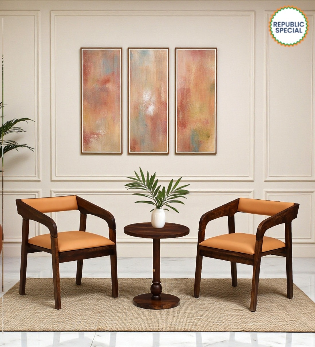 Carden N Sheesham Wood Cafe Table Set In Provincial Teak Finish with Back Cushion