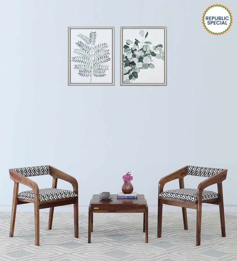 Carden Sheesham Wood Coffee Table Set in Scratch Resistant Rustic Teak Finish with 2 Chairs