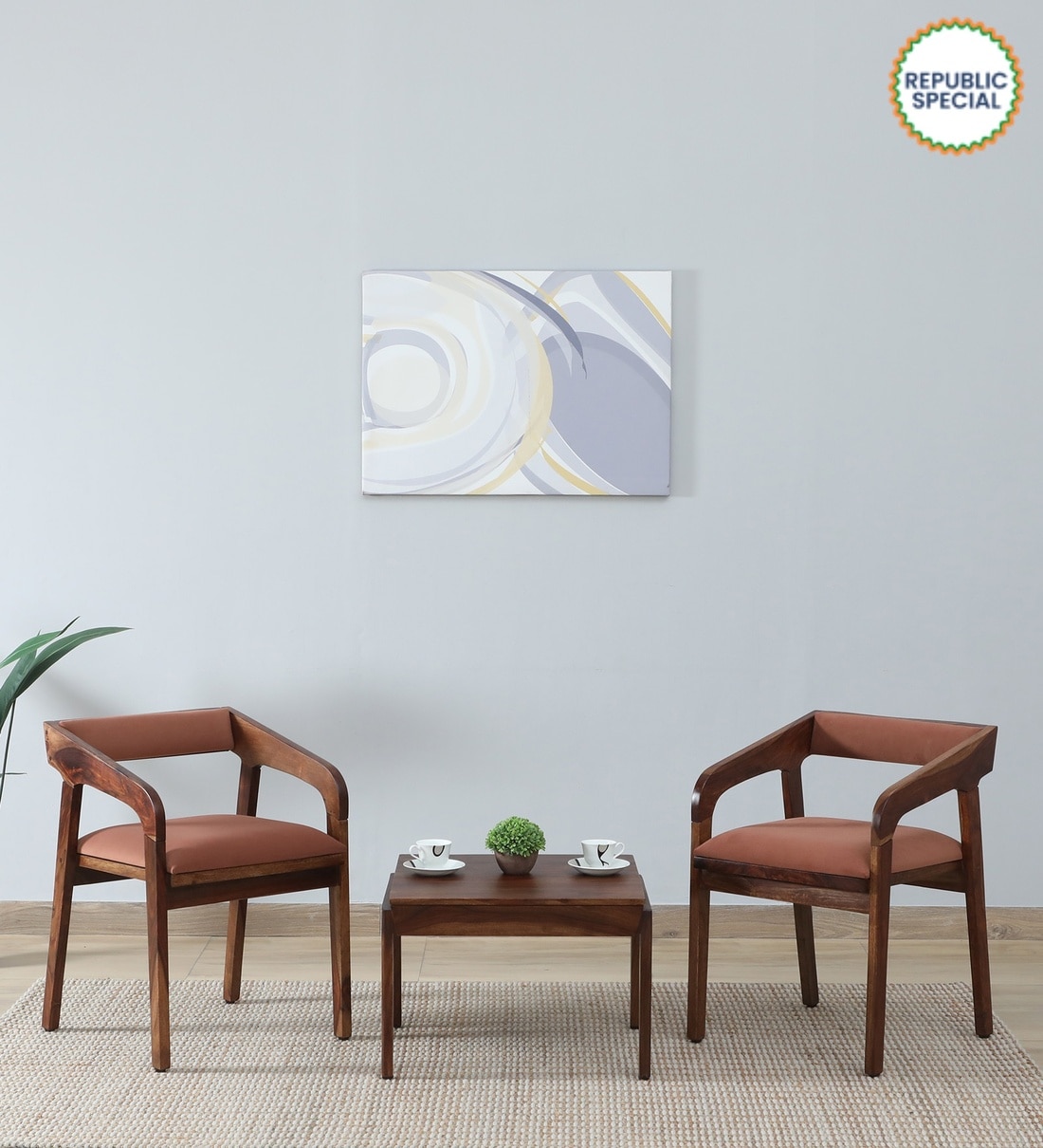 Carden Sheesham Wood Coffee Table Set In Scratch Resistant Provincial Teak Finish And Mocha Mousse Colour With Cushion