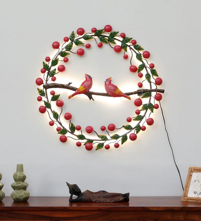 Cardinal Berry Wreath Multicolour Handmade Metal Wall Art