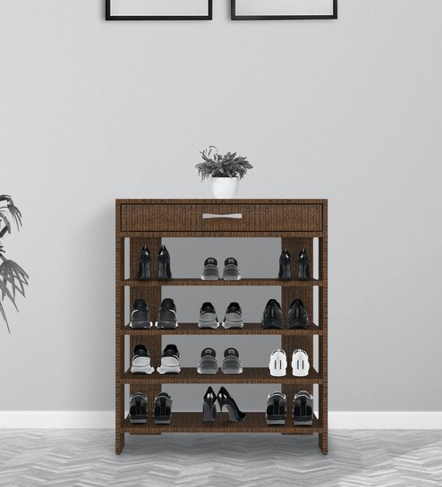 Carina Open Shoe Rack with Drawer in Tawny Cambric Finish