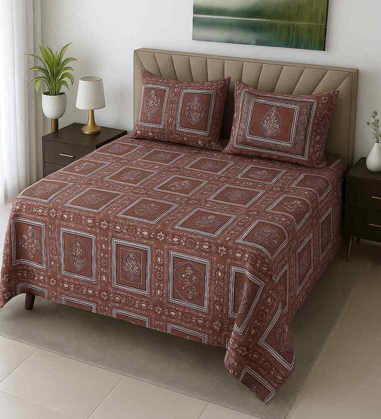 Carrot Floral 400 TC Cotton Queen Size Bedsheet with 2 Pillow covers Essential Series Collection