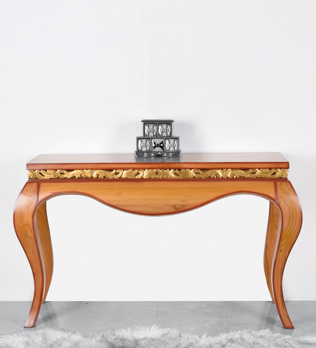 A Console Table is wide, shallow and roughly as tall as a regular table or desk which sits up against a wall. The average console table height is 30 inches, though designs can range anywhere from 28 inches to 32 inches in height.