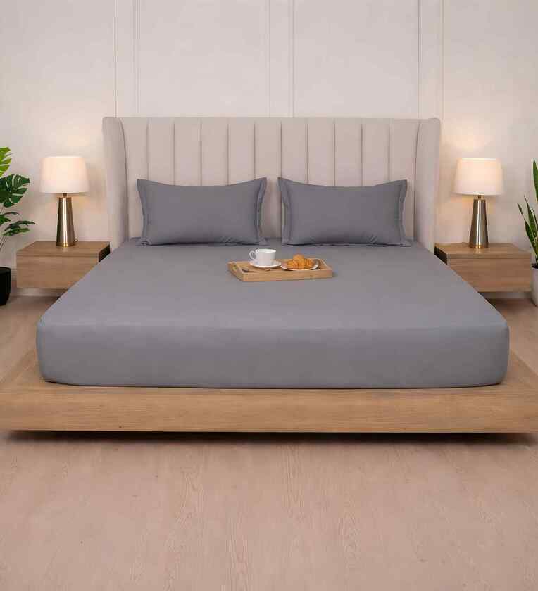 Celestial Cascade Solid 300 TC Pure Cotton King Fitted Bedsheet with 2 Pillow Covers