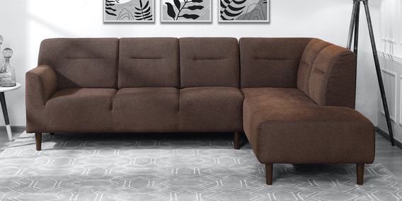 Celso Fabric LHS Sectional Sofa (3 + Lounger) in Chestnut Brown Colour