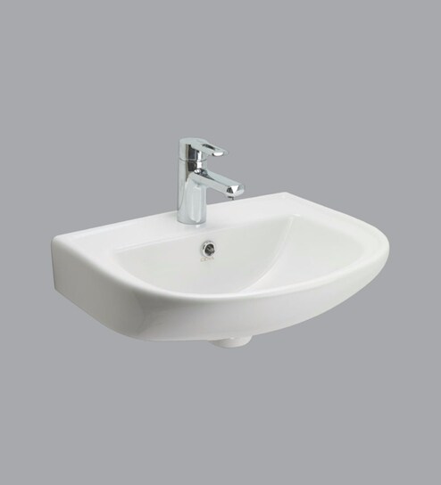 Ceramic U-Shape White Wall Mounted Wash Basin (H: 7, W: 20.6, D: 16.4 Inches)