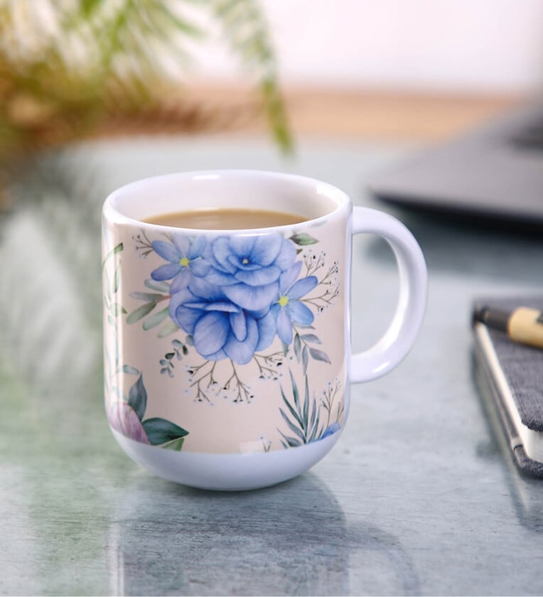 Ceramic Coffee Capsule Mug With Navy Blue & House Print