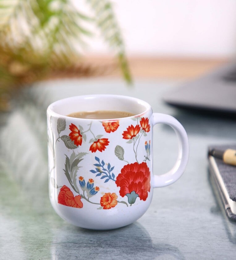 Ceramic Coffee Capsule Mug With White & Red Floral Print