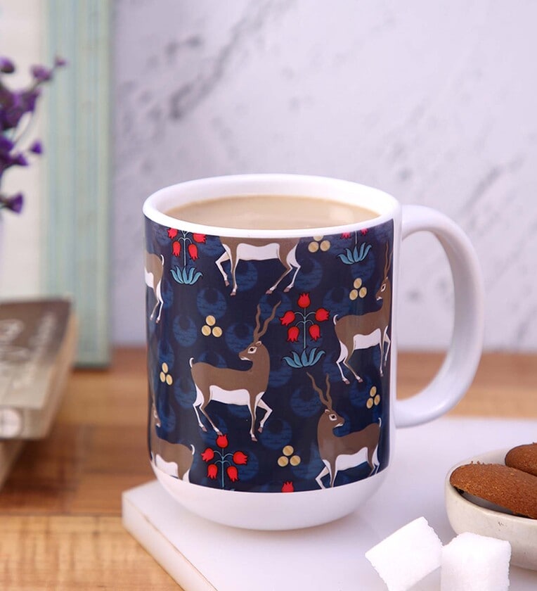 Ceramic Tea Capsule Mug With Beige & Blue Floral Print