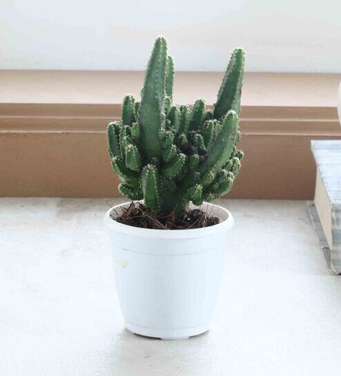 The Cereus Florida is an easy to cultivate cactus characterized by rapid growth featuring an elongated stem, like a pillar, with white bead like spikes on its edges. This is a very distinctive and attractive small succulent with a dark green stem edged with a whitish border. Stem cuttings can easily be used to propagate Cereus cactus. This succulent is real beauty for any plant lover and the pride of our plant nursery.Dimensions of Potted Plants: L x B x H ~ 4" x 4" x 6"Growth Medium: Coco PeatPot Description: Square Plastic PotHow to Care for Cereus Florida CactusLight: Full sunlightWater: Once in 7 days with protection from direct exposure to rainFeed: Not required unless plant is growing activelyCommon NamesCereus Cactus, Cereus FloridaNative RegionSouth AmericaBotanical NameCereus Peruvianus 'Florida'FamilyCactaceae