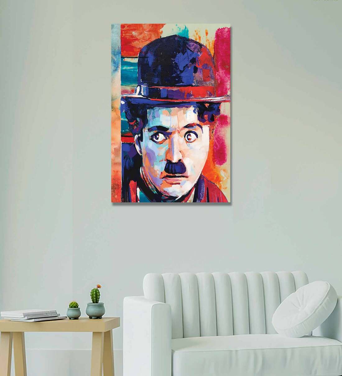 Charlie Chaplin Multicolour Canvas Teakwood And MDF Framed People and Places Art Print