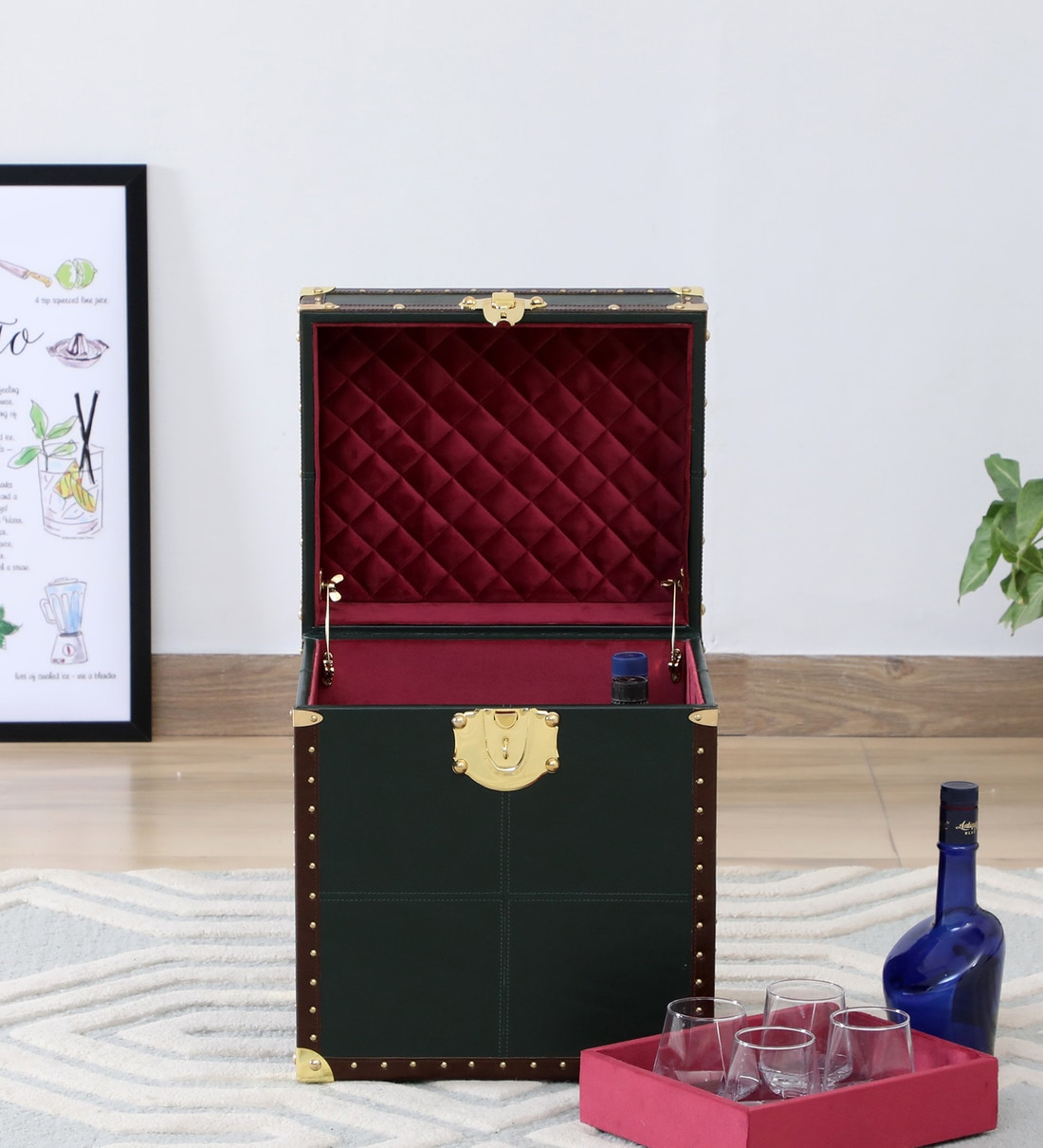 Chavez Leather Portable Bar Cabinet In Green Colour