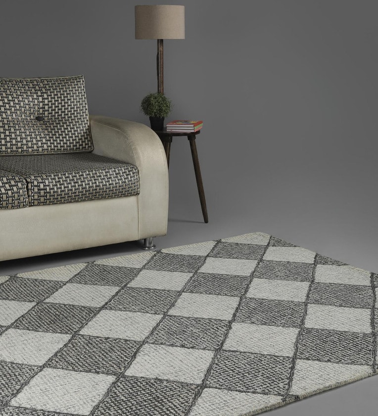 Checkered Pattern Wool Hand Tufted 5 X 8 Feet Carpet