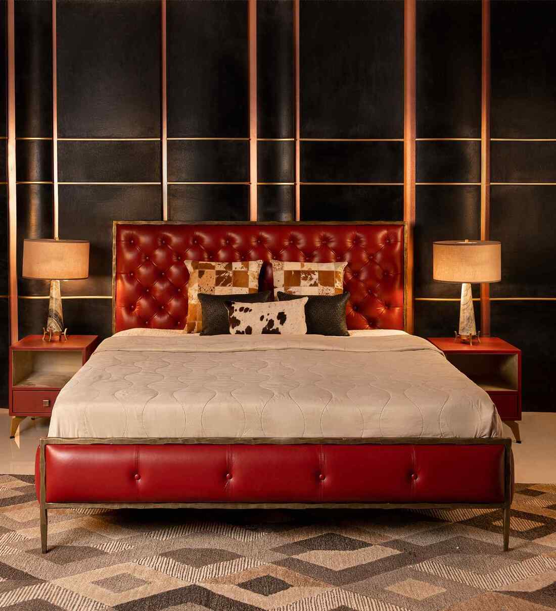 Rooted in the timeless elegance of classic British design, the Chesterfield Bed takes inspiration from the refined sophistication of 18th-century aesthetics. The deeply tufted leather headboard, a hallmark of this iconic style, evokes a sense of grandeur while ensuring plush comfort. Paired with a sleek brass-finished frame, the design seamlessly bridges tradition and modernity. Crafted with attention to detail, this bed transforms your bedroom into a luxurious retreat, blending heritage-inspired charm with contemporary functionality.
