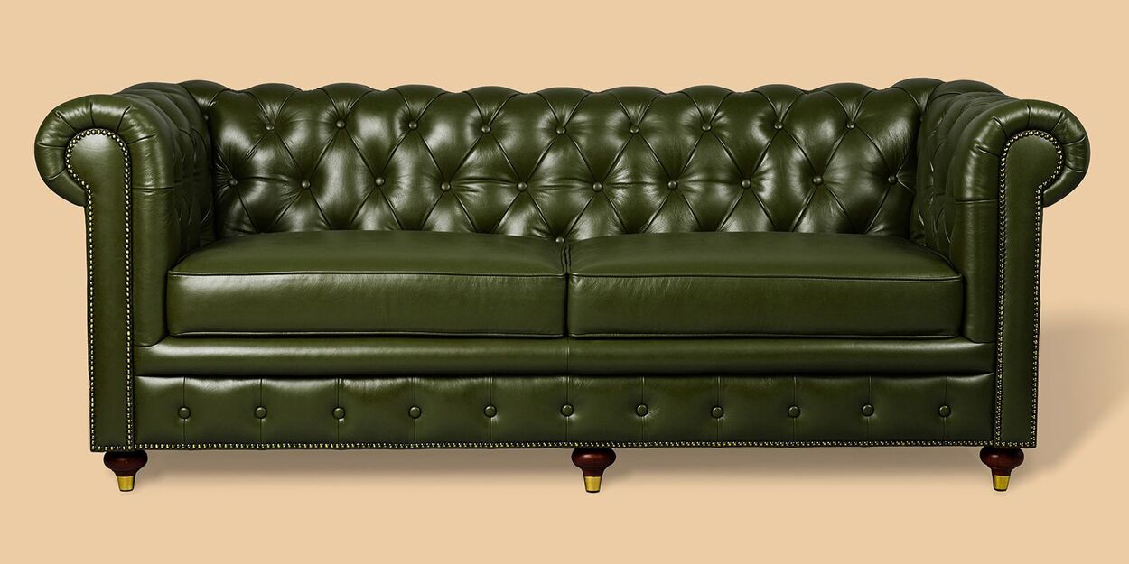 Chesterfield Leather Three Seater Sofa in Olive Green Colour