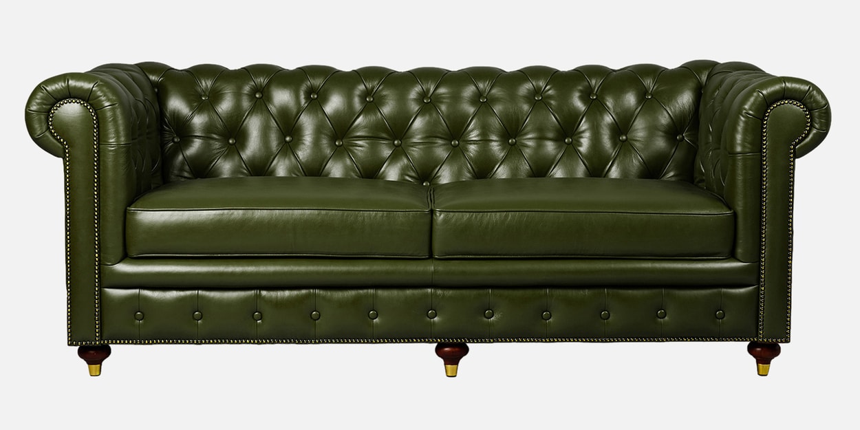 Chesterfield Leather Three Seater Sofa in Olive Green Colour