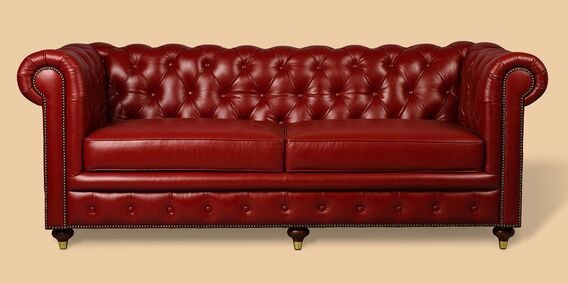 Chesterfield Leather Three Seater Sofa in Red Colour