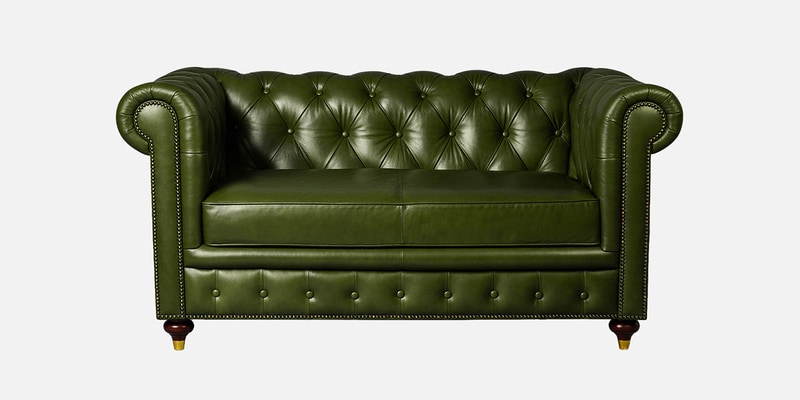 Chesterfield Leather Two Seater Sofa in Olive Green Colour