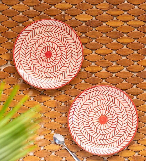 Chevrons 7 Inch Red Ceramic (Set of 2) Quarter Plate
