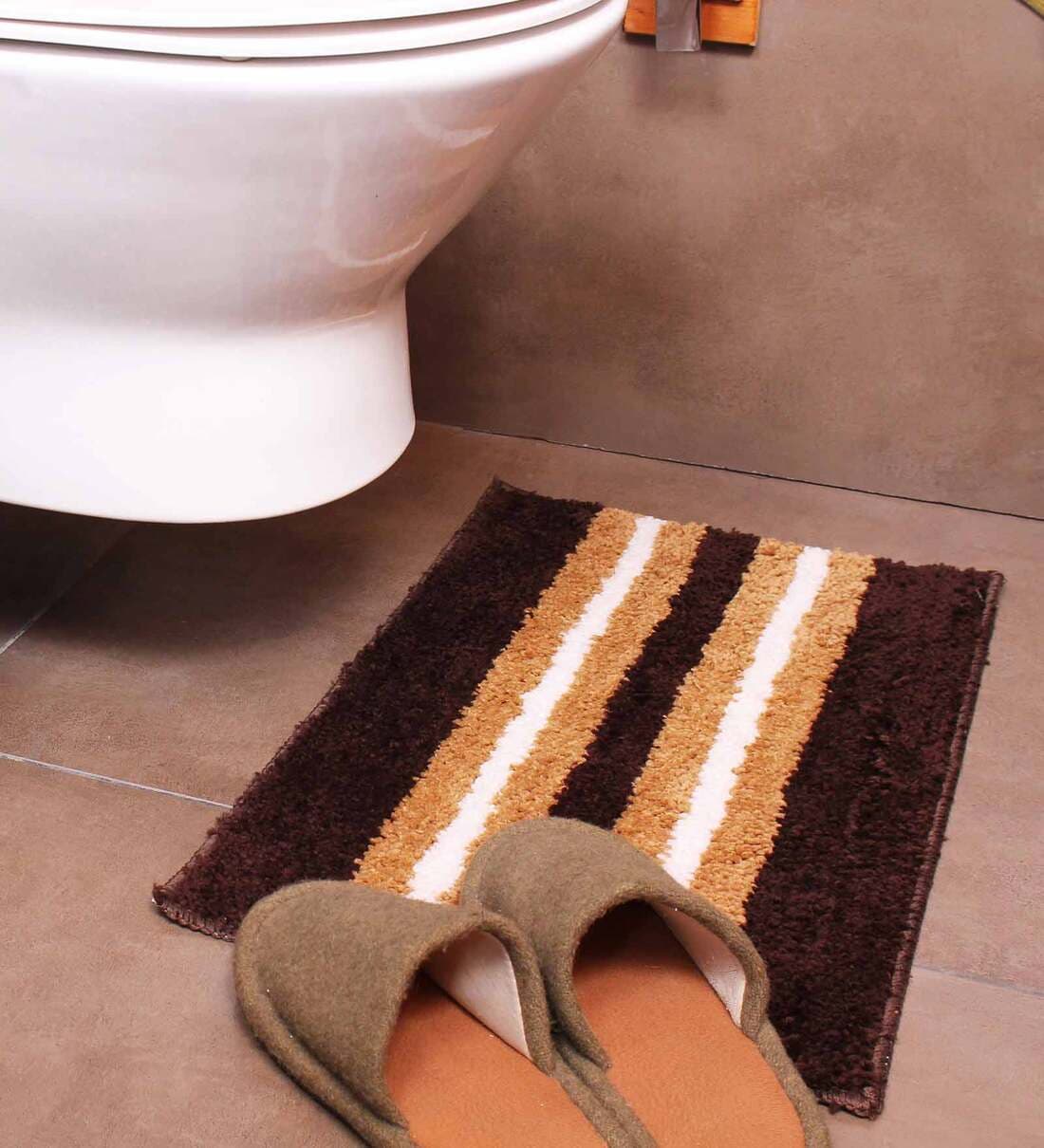 Chocolate Geometric Microfibre 23x15 Inches AntiSkid Bath Mat