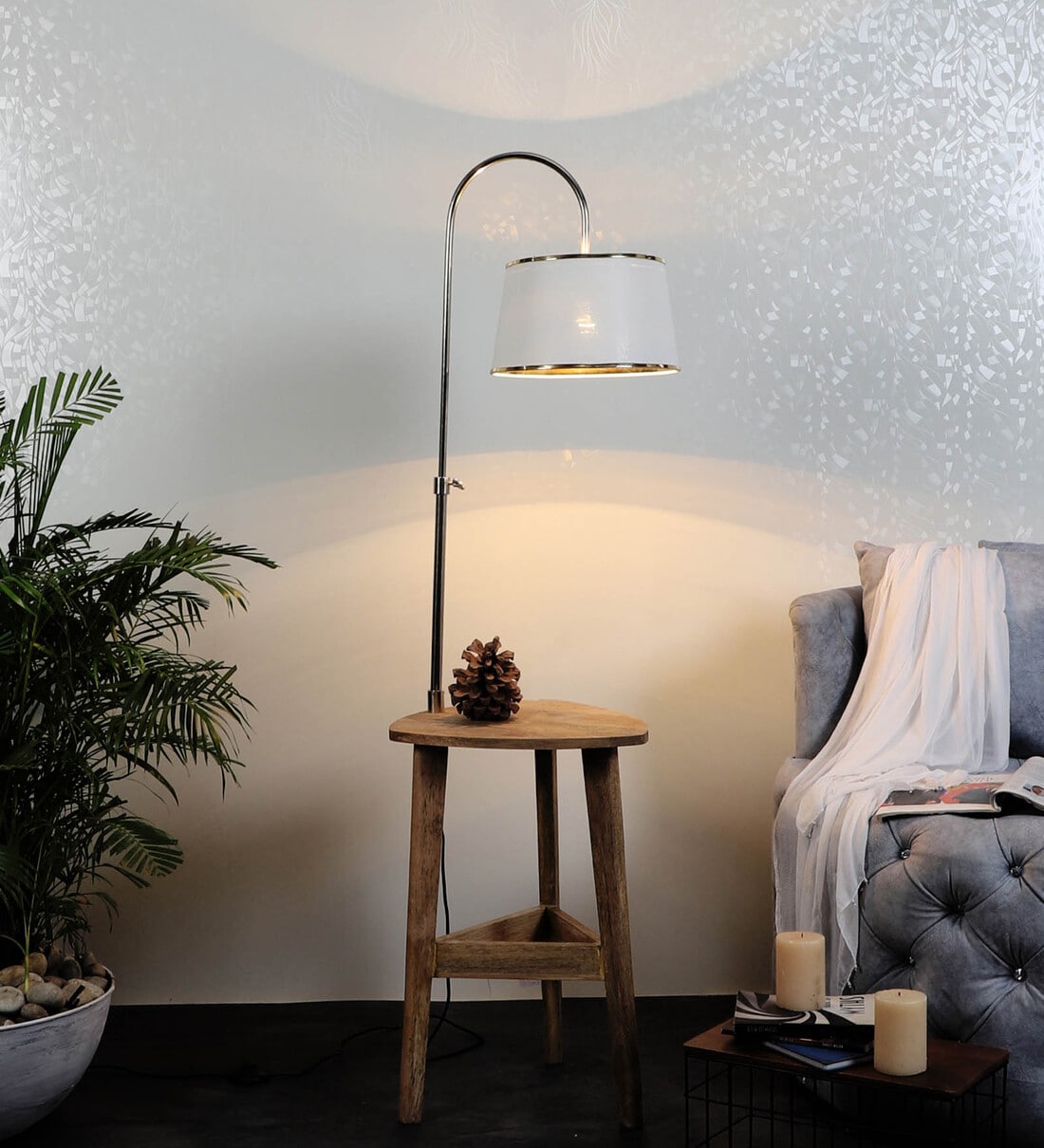 Ciaro White Iron Shade Shelf Floor Lamp With Wood Base