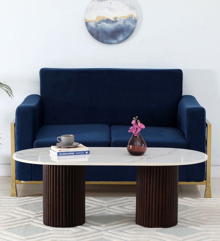 Cierra Solid Wood Coffee Table In Walnut Finish With Porcelain Top & Fluted Detail