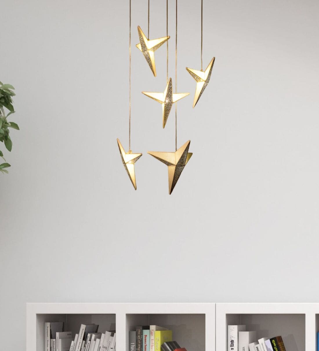Drawing inspiration from errant birds dotting cityscapes, this single piece hanging canopy lamp, is a striking blend of handcrafted lokta fibre paper or banana fibre paper and perforated brass. An apt addition for contemporary residences and corporate spaces.