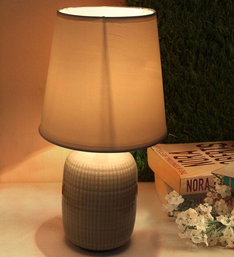 Classic Grey Fabric Shade Night Lamp With Ceramic Base
