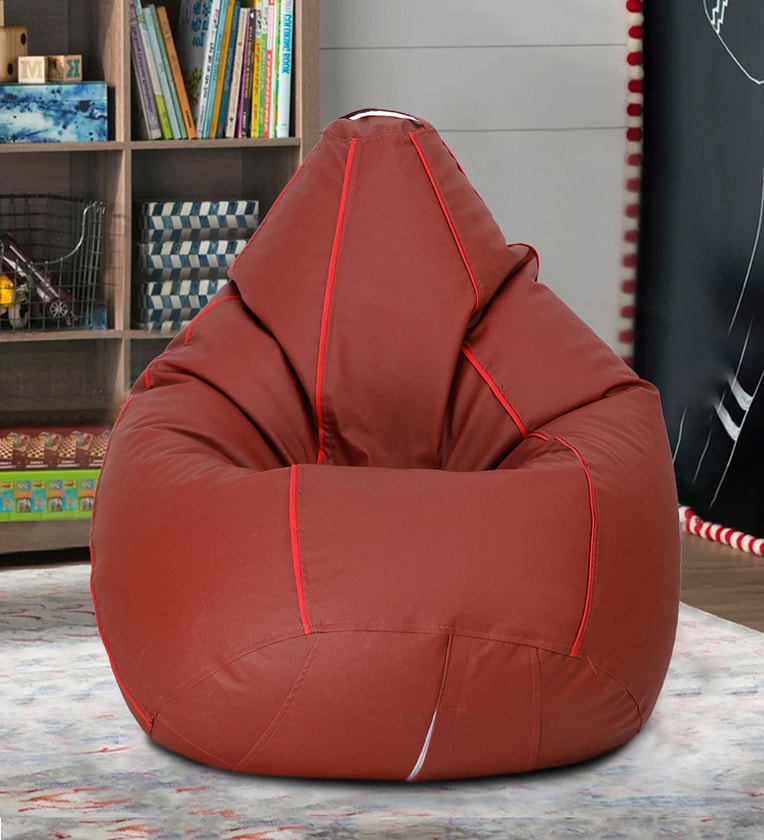 Classic XXXL Bean Bag with Beans in Tan Colour with Red Piping