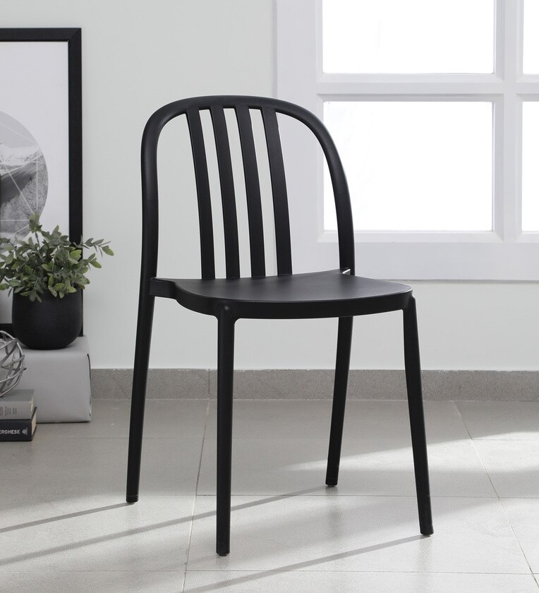 The chair is used indoors & Outdoors like in Cafes,Restaurants , Private Home, Offices. It has a backrest and four legs.