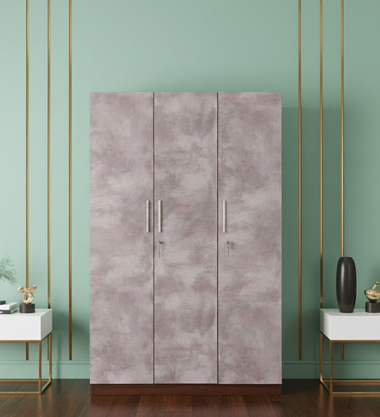 Masterfully crafted of pre-laminated engineered wood. The combination of dark Acacia and greige textured finish creates a striking contrast. 3-door design with 1 hanger rod, 7 shelves, and 1 lockable drawer offer abundant storage. Linear metal door pulls complement the design. Ergonomic dimensions offer easy usage. Smooth finished edges eliminate moisture seepage, prevent warping and make it last longer. Premium polish with low chemical emissions ensures healthy indoor air for your family. Levelers offer stability on uneven surfaces This product is a part of the Claudia Collection.