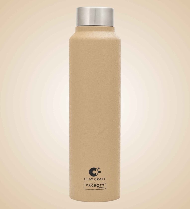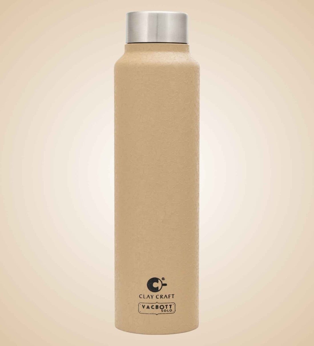 Clay Craft Vacbott Tetra SS Lid Single Walled Non Insulated Water Bottle, 1000 ml (Beige) Steel Water Bottles for School, Office, Home, Gym, Water Bottle for Men Leakproof, Rust free Steel Bottle