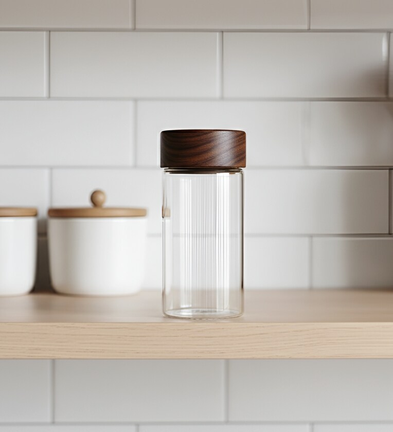 Clear 120 ml Borosilicate Glass Storage Jar with Airtight Acacia Wood Lid