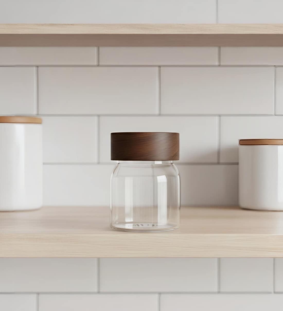 Clear 200 ml Borosilicate Glass Storage Jar with Airtight Acacia Wood Lid