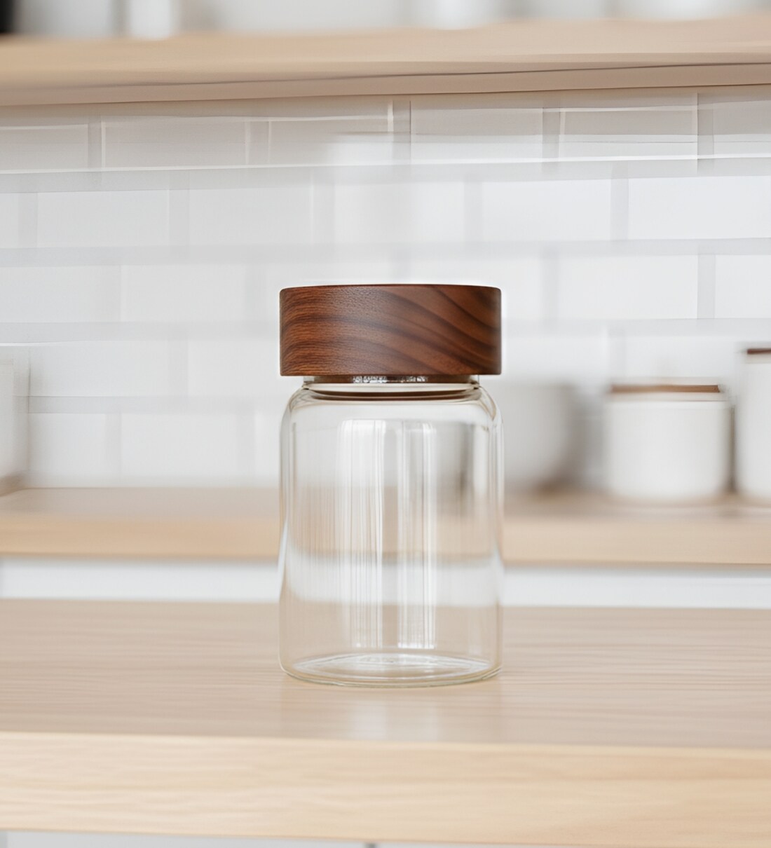 Clear 250 ml Borosilicate Glass Storage Jar with Airtight Acacia Wood Lid