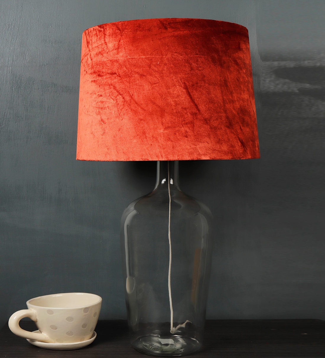 Clear Bottle Rust Velvet Shade Table Lamp with Transparent Base